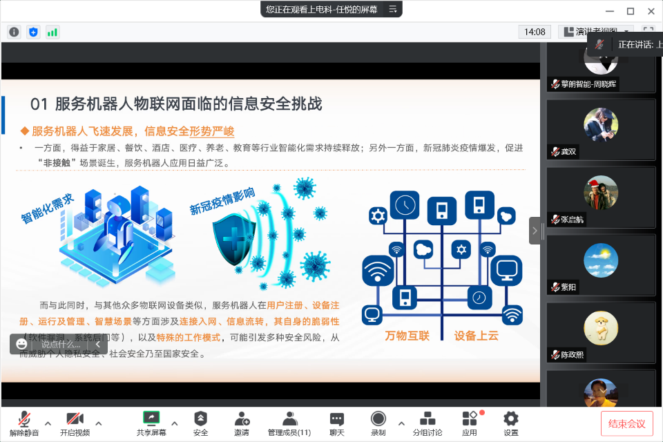 8月18日,《服务机器人信息安全要求和测试方法》(立项号:CEEIA2021082)标准第三次工作组会议以线上会议方式召开。标准由上海电器科学研究所牵头起草,行业知名企业和高校11家单位、12位专家代表参加了此次会议。