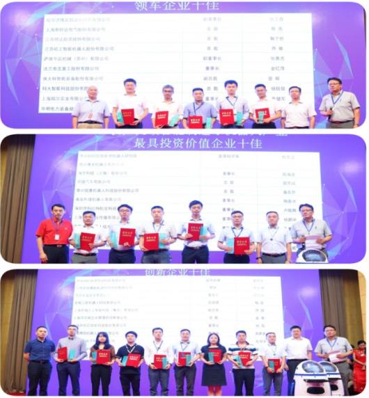 何积丰院士、赵淳生院士、谭建荣院士、孙立宁院长、赵杰所长、张玉春副董事长、蔡亮总裁、郑军奇院长、雷雨成总裁、金红萍董事长等获颁“风云人物”奖;新时达股份、博实股份等获颁领军企业奖;绿的减速器、博信机器人、三联机器人等获颁创新企业奖;康多机器人、深兰科技、铭赛机器人、科捷机器人获颁更具投资价值企业奖;华元创信软件、提格机器人、彩虹鱼、海思达机器人获颁更具潜力企业奖;颁奖环节人气旺盛,奖项丰富,场面热烈,特约嘉宾颁奖嘉宾--联盟专用会议、办公机器人“提格小胖”也是表现出浓浓的智能制造产业色彩。